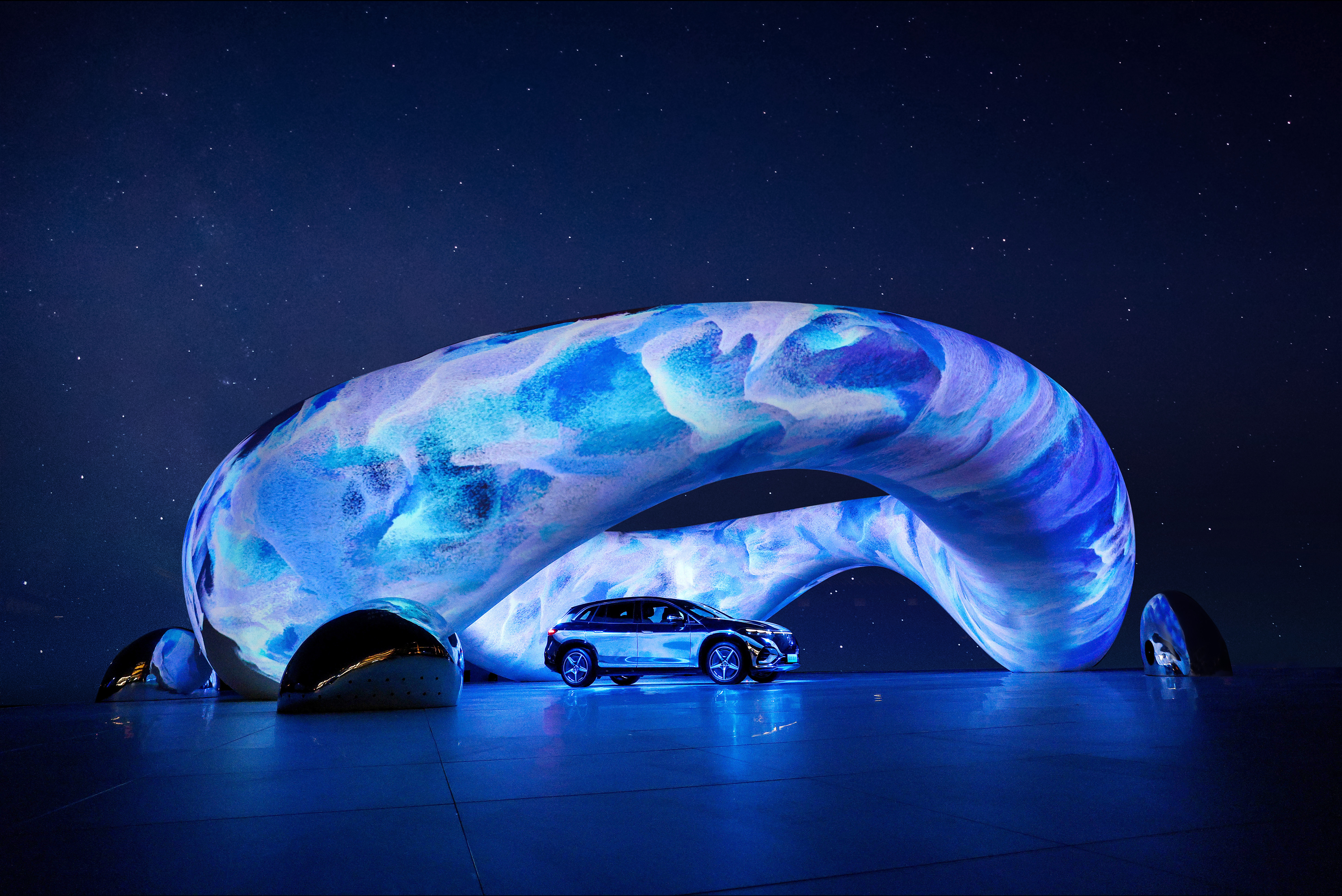 奔驰EQS纯电SUV发布会大型公共艺术装置