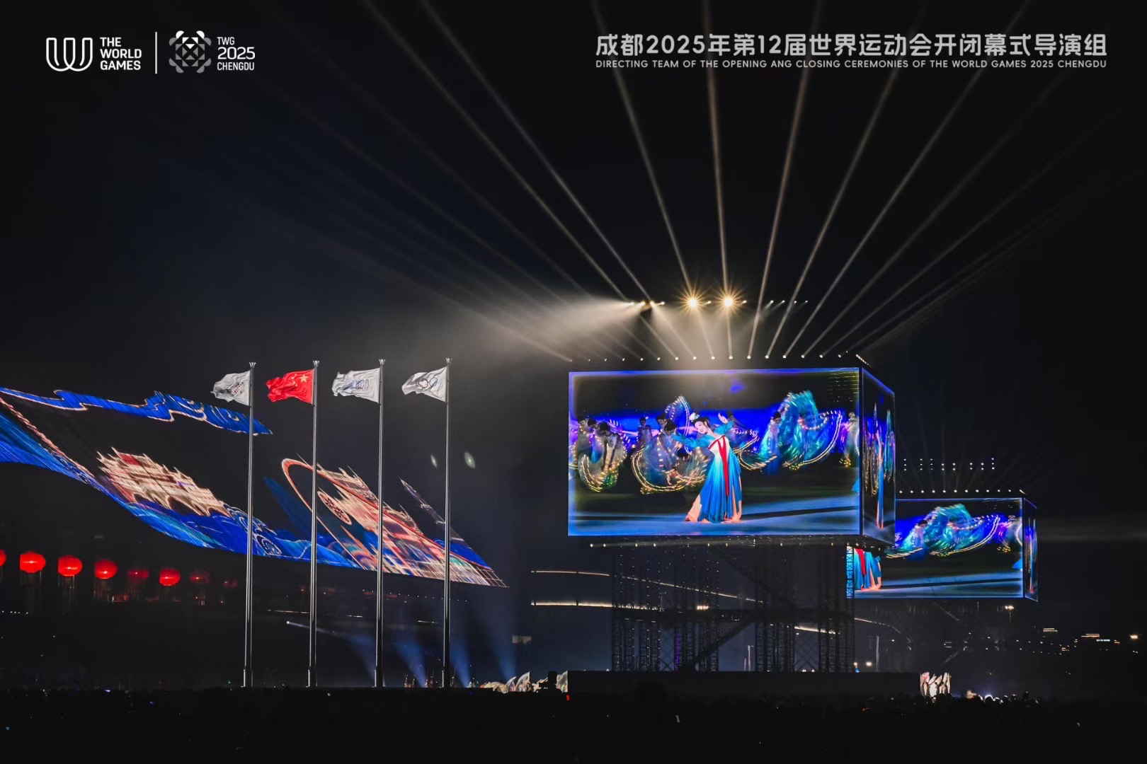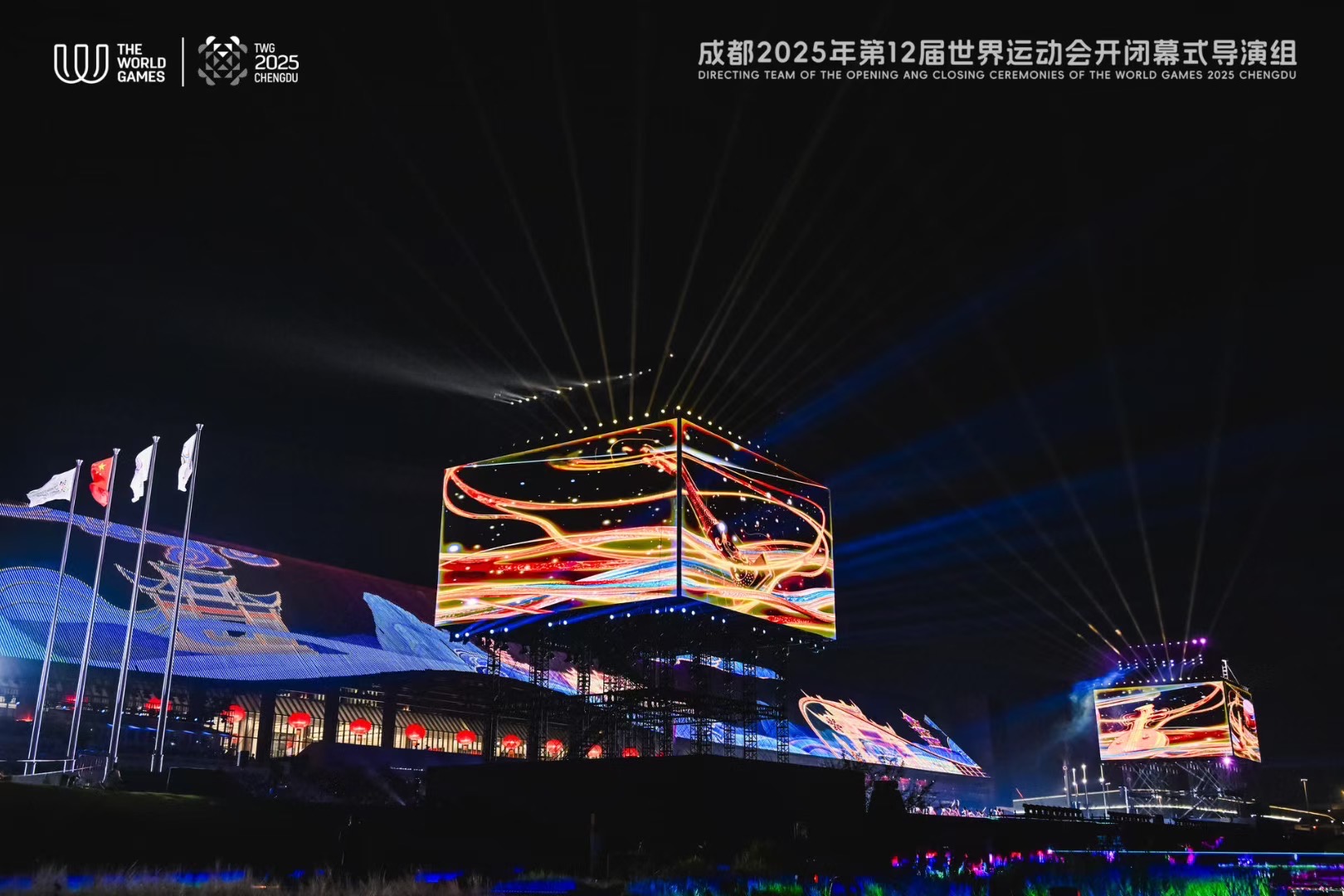 从“天府之檐”铺展科技与人文画卷,到园林光影中奏响温情终章,清华大学美术学院教授王之纲担任视效总设计,带领鱼果团队助力成都2025年第12届世界运动会开闭幕式,为全球观众呈现出兼具震撼视听与人文温度的文体盛宴。从活力四射的《缤纷之约》,到蜀韵悠长的《锦绣之韵》,从“AI全球笑脸墙”到成都市井风貌的光影叙事。鱼果视效团队在成都世运会的舞台上,首次以“直播信号+裸眼3D”无缝融合的技术突破,在“天府之檐”超400米数字长屏、主舞台地屏与两侧斗屏的多媒介联动中,构建跨越古今的文化叙事,在光影交织中演绎东方浪漫。